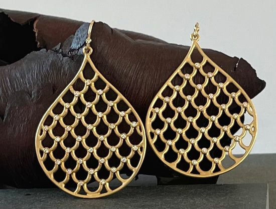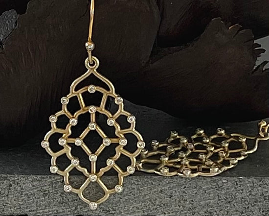 Statement Earrings18k gold earrings with a scallop motif and a sprinkling of diamonds