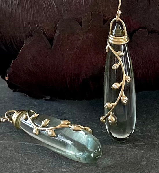Leaf Drop EarringsGreen amethyst stones set in 18k gold with a diamond leaf motif