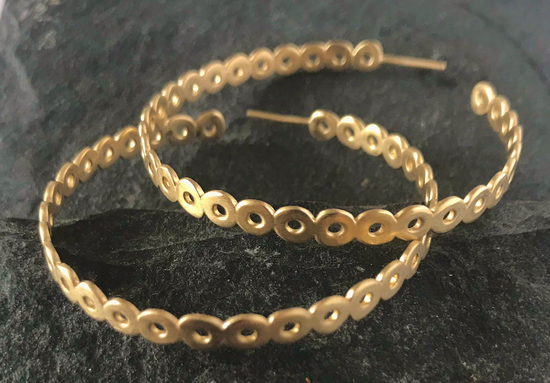 Hoop EarringsSmall hammered pieces are joined to create 18k hoop earrings